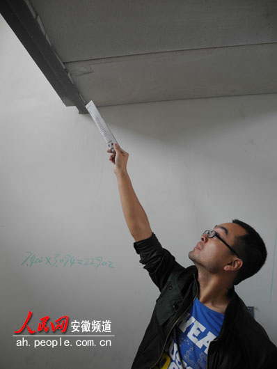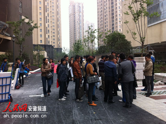 昨天上午,业主们集体找到开发商合肥华顺房地产开发公司讨说法。开发商方面派出一位姓王的副总出面答复业主疑问。在业主们最质疑的隔离板质量问题上,这位王总信誓旦旦地声称这种隔离板是新型轻质建材,符合国家规定,质量绝对没问题。看到记者拍照,这位王总立刻出面予以制止。