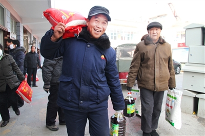 近日,城北区小桥村的村民们收到了一份新春礼物——为了让村民们切身感受到党和国家对人民群众的关心、感受到他们的劳动成果,小桥村村委会拿出近90万元的集体经济所得,给村里的村民们送去米、面、油和现金。黎晓刚黎明山摄