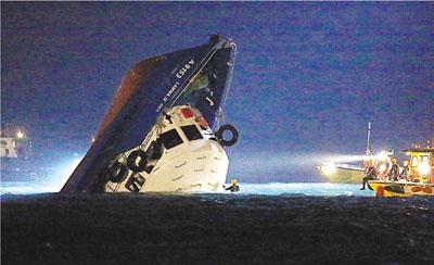 当日渡轮被撞后即时下沉,百人堕海。 香港文汇报资料图片