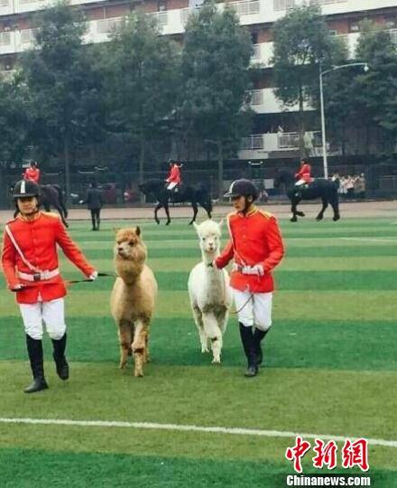 四川某高校邀请羊驼助阵马术专业川传学生供图摄