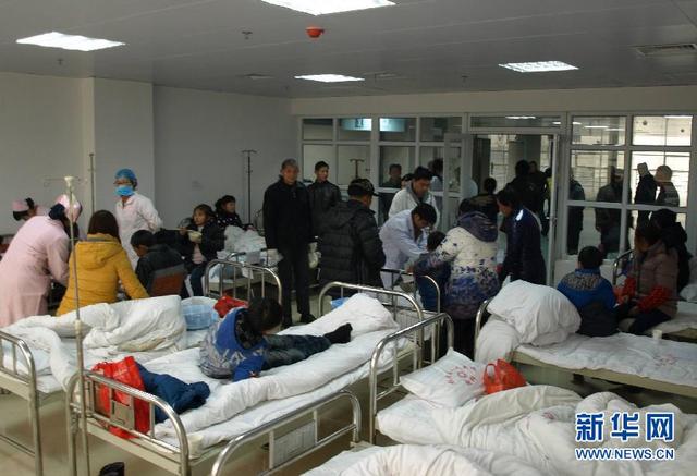 1月12日,出现呕吐、腹泻、发热等症状的学生在医院接受治疗。