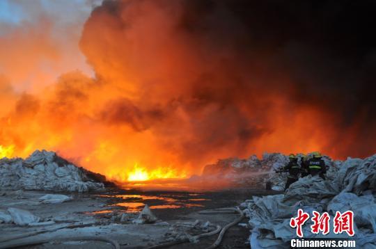 19时22分,格尔木公安消防支队西城区中队官兵到达现场后发现,起火物为厂区内堆积大量的废旧塑料编织品,火借风势迅速向东、南、西侧蔓延,相邻厂区库房内堆积着大量加工过的塑料半成品。