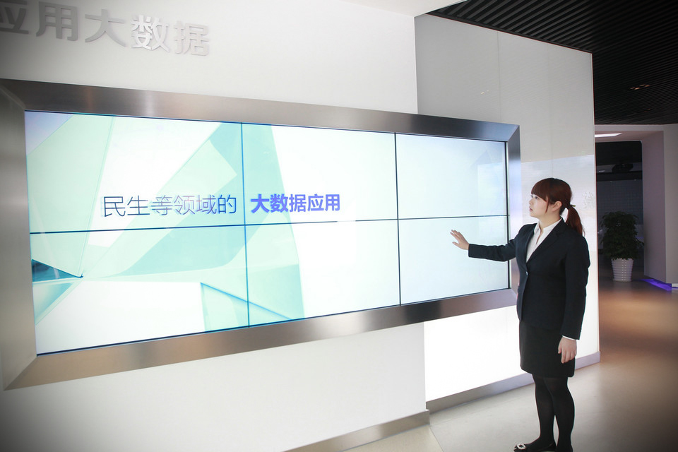 在展示中心的“时空隧道”展厅,通过声、光、电等现代科技手段将大数据理念进行淋漓尽致的诠释,让人切身感受到了大数据的神奇魅力。