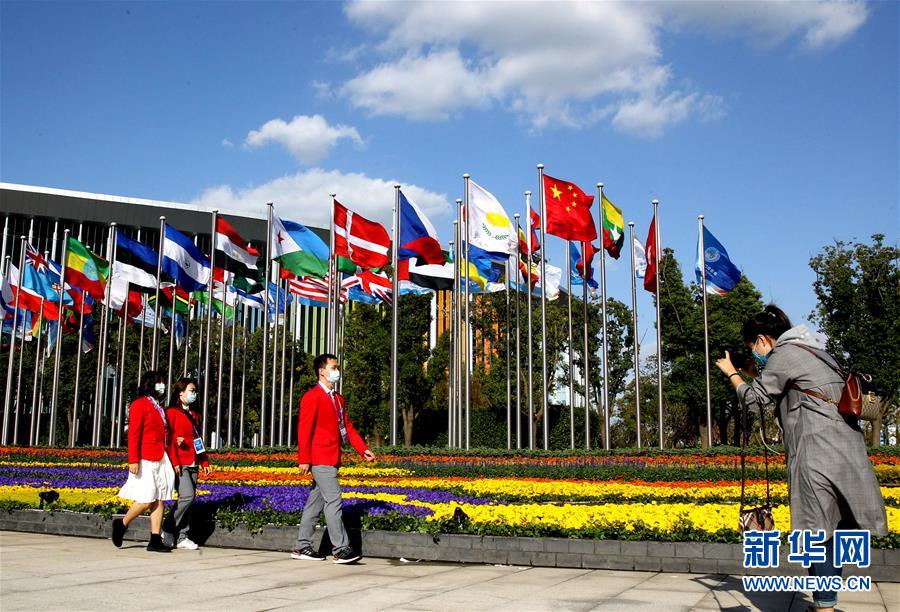 11月3日,人们在国家会展中心(上海)南广场拍照留念。 第三届中国国际进口博览会暨虹桥国际经济论坛开幕式将于11月4日晚在上海举行。美丽的上海张开怀抱,迎接八方来客。作为全球首个以进口为主题的国家级展会,在全球范围疫情尚未得到全面控制的背景下,第三届进博会是一场特殊的东方之约。 新华社记者 陈飞 摄