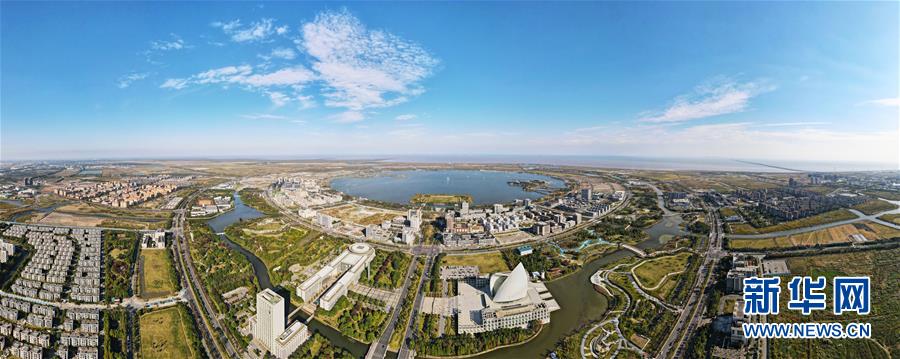 10月25日拍摄的上海临港新城滴水湖畔(无人机全景照片)。 第三届中国国际进口博览会暨虹桥国际经济论坛开幕式将于11月4日晚在上海举行。美丽的上海张开怀抱,迎接八方来客。作为全球首个以进口为主题的国家级展会,在全球范围疫情尚未得到全面控制的背景下,第三届进博会是一场特殊的东方之约。 新华社记者 方喆 摄