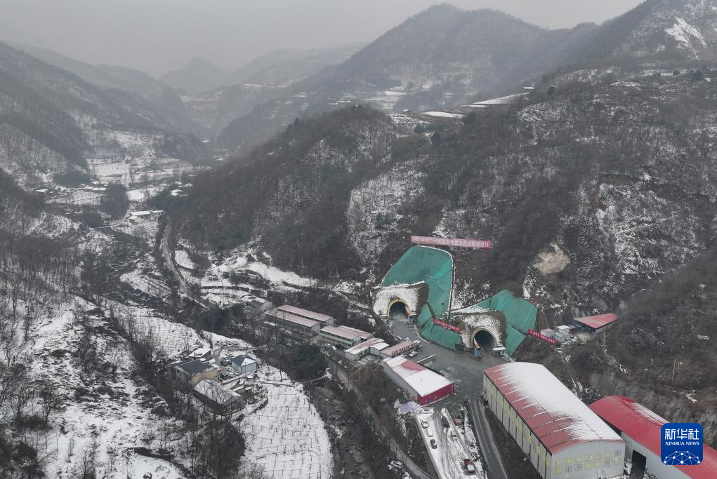 这是2月28日拍摄的位于陕西省宝鸡市眉县的眉太高速太白山隧道进口(无人机照片)。