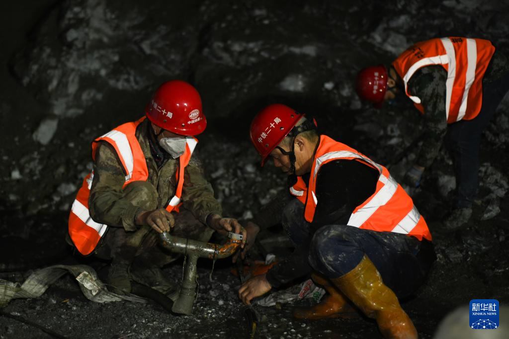 2月28日,中铁二十局工人在位于陕西省宝鸡市眉县的眉太高速太白山隧道施工。