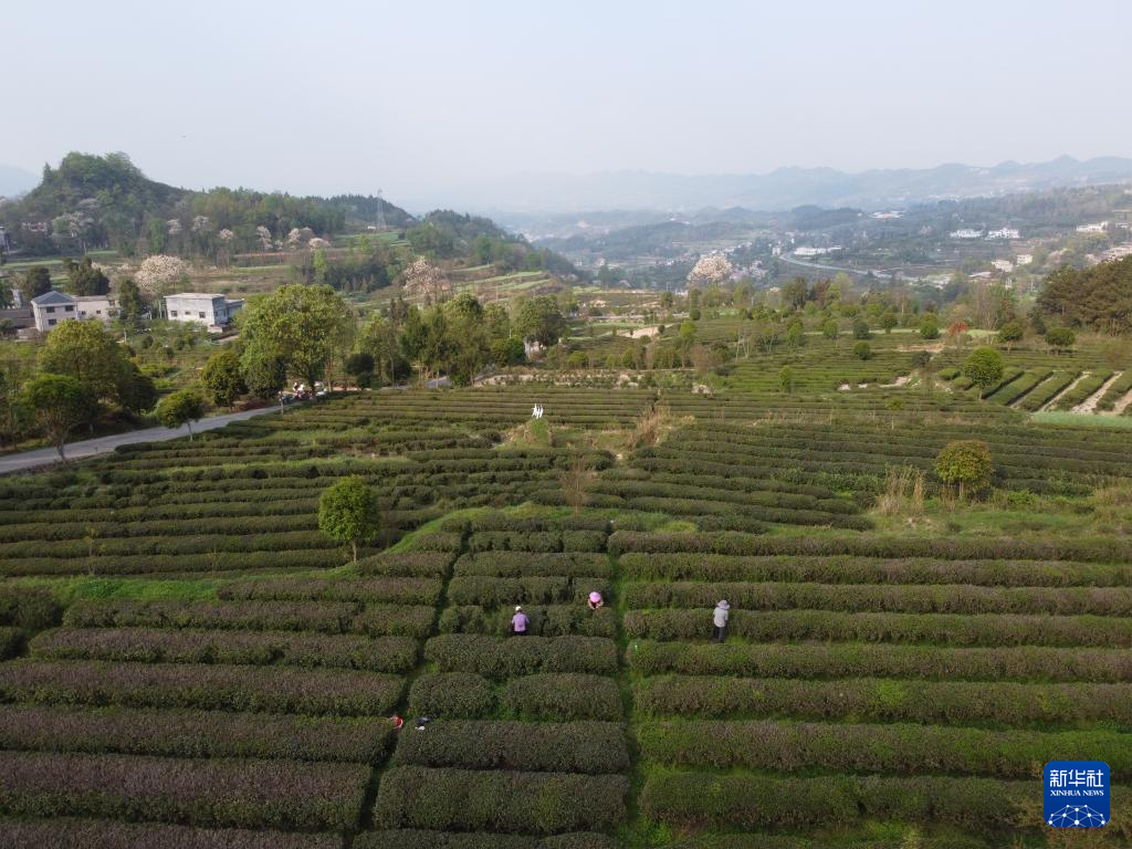 清明节将至,贵州省石阡县龙井仡佬族侗族乡枫香坪村茶农抢抓农时,采摘春茶。