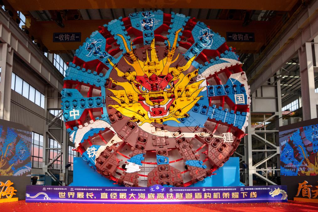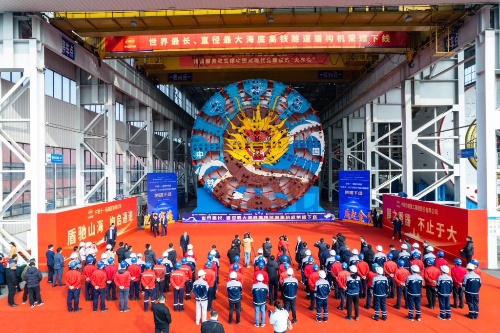 2024年1月10日,超大直径盾构机“定海号”在铁建重工长沙第一产业园顺利下线。新华社记者 陈思汗 摄