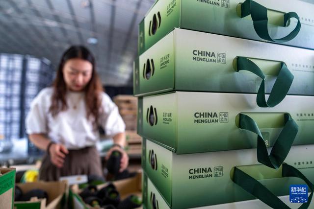 工人在中国孟连牛油果集配中心内包装分选后的牛油果(10月29日摄)。新华社记者 陈欣波 摄