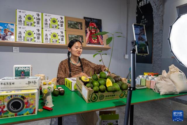 孟连县“牛友果星球”工作室的一名主播通过直播售卖牛油果(10月28日摄)。新华社记者 陈欣波 摄
