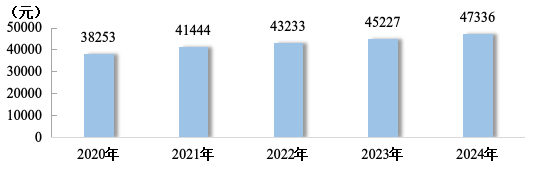 按常住地分,城镇居民人均可支配收入47336元,比上年增加2109元,比上年增长4.7%。其中,工资性收入27525元,增长4.9%;经营净收入5526元,增长5.3%;财产净收入3620元,增长3.2%;转移净收入10666元,增长4.2%。城镇居民人均消费支出30874元,增长5.4%。其中,教育文化娱乐支出增长10.2%,交通通信支出增长9.5%,其他用品和服务支出增长7.0%。城镇居民恩格尔系数32.5%。
