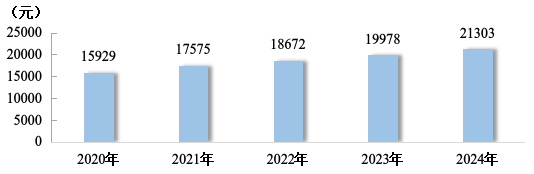 农村居民人均可支配收入21303元,比上年增加1325元,比上年增长6.6%。其中,工资性收入6618元,增长6.4%;经营净收入8049元,增长5.9%;财产净收入625元,增长2.6%;转移净收入6010元,增长8.3%。农村居民人均消费支出18878元,增长5.5%。其中,教育文化娱乐支出增长17.5%,交通通信支出增长3.2%,其他用品和服务支出增长8.9%。农村居民恩格尔系数32.9%。