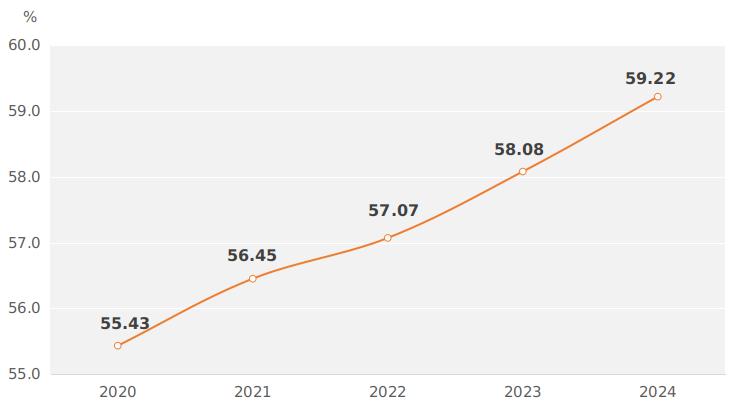 图1 2020-2024年河南省三次产业增加值占地区生产总值比重