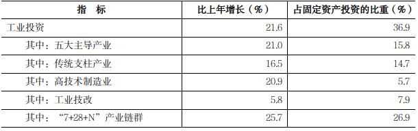 全年全省固定资产投资(不含农户,下同)比上年增长7.0%。其中,第一产业投资增长3.2%,第二产业投资增长21.7%,第三产业投资下降0.2%。基础设施投资下降1.8%,民间投资增长10.5%,工业投资增长21.6%,“7+28+N”产业链群投资增长25.7%,社会领域投资增长3.7%。