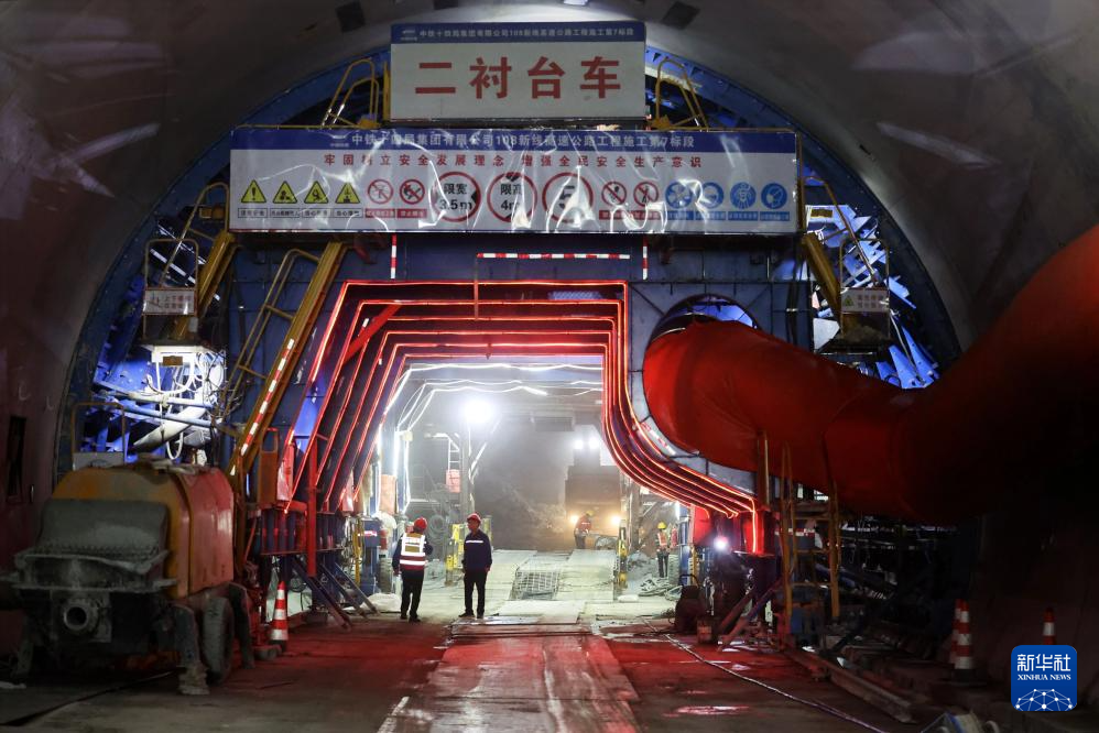 5月5日,中铁十四局工人在黑龙关隧道建设现场施工。