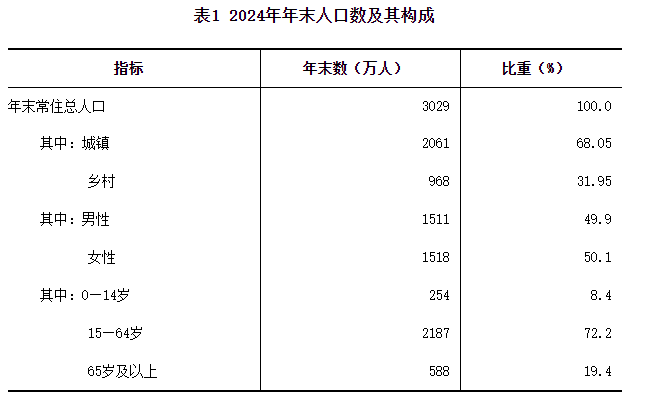 表1 2024年年末人口数及其构成