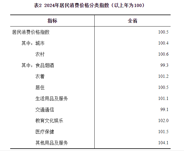 表2 2024年居民消费价格分类指数(以上年为100)