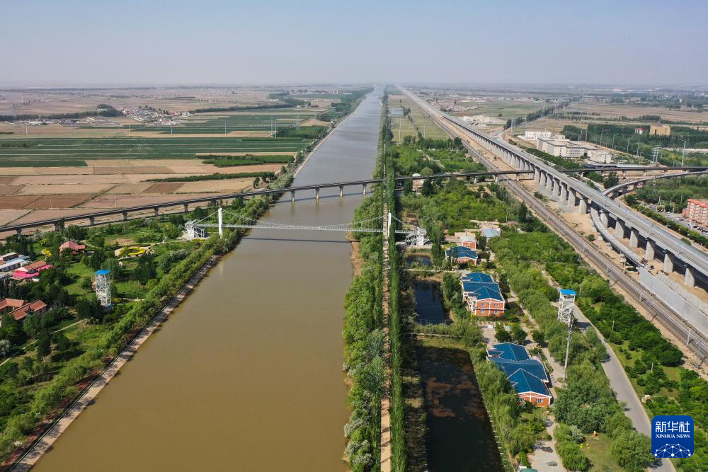 这是5月28日拍摄的巴彦淖尔市临河区境内的总干渠(无人机照片)。新华社记者 李志鹏