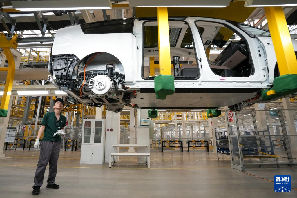 6月18日,工作人员在理想汽车北京智能制造基地总装车间内工作。
