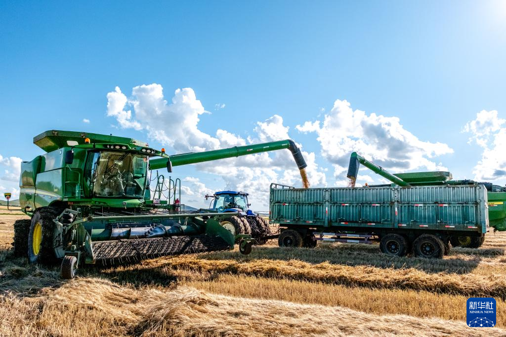 近日,位于内蒙古呼伦贝尔市额尔古纳市的呼伦贝尔农垦拉布大林农场19.22万亩小麦迎来丰收季,当地农民抢抓农时,以大规模机械化的方式开展收割、晾晒作业。