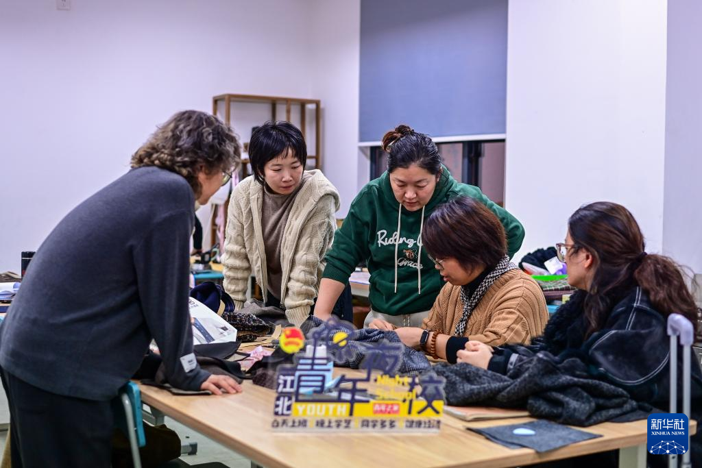 11月26日,在宁波市江北青少年活动中心,老师(右二)在青年夜校的服装设计课上指导学员。