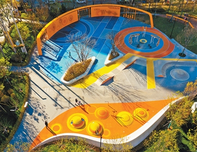图为位于沈阳市浑南区恒达路上的口袋公园,在设计上考虑了各年龄群体需求。