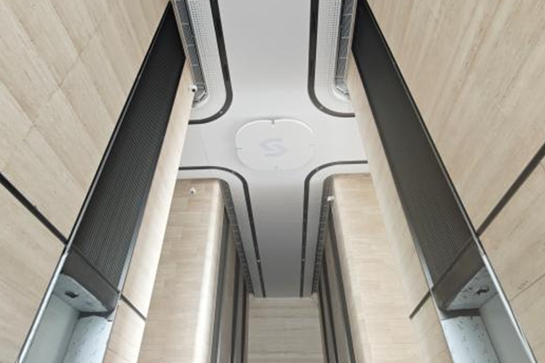 走进皇岗口岸综合业务楼,首先映入眼帘的是13米高、采光通透极好的玻璃大堂。流线型穿孔金属吊顶以柔化的曲线呼应口岸开放流动的属性,灯光与吊顶一体化设计成为空间的隐形引导者。墙面采用浅暖色调的天然洞石作为主要材料,经过精细打磨的石材表面呈现出自然的纹理肌理,宛如层层叠叠的山石,温润亲和且富有质感。地面则以浅灰色大理石铺就主要通行区,深灰色大理石精准界定闸机区、接待区等功能分区,通过自然色差划分空间动线,让动线清晰高效,视觉层次分明。