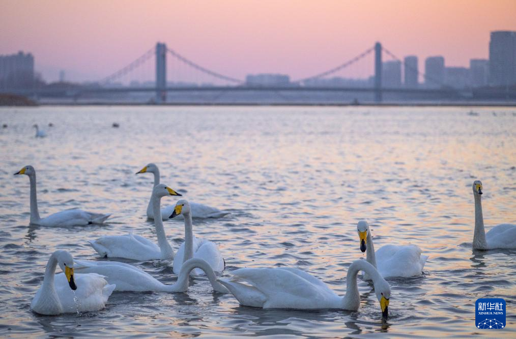冬季以来,大批天鹅飞临辽宁省朝阳市大凌河栖息越冬,吸引人们前来观赏和拍照。