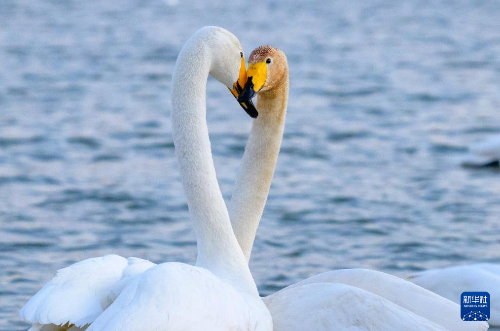 2月24日,两只天鹅在大凌河朝阳市双塔区河段嬉戏。