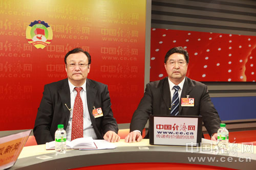 资料图:2011年3月,全国人大代表雪克来提.扎克尔(左)做客“中经在线访谈”栏目。 摄影/高斌