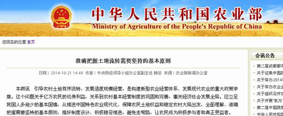 中国经济网北京10月22日综合报道 10月21日,农业部网站发布《准确把握土地流转需要坚持的基本原则》文章,署名为中央财经领导小组办公室副主任韩俊。