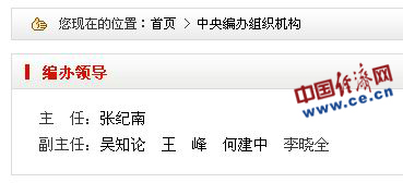 中国经济网北京1月19日综合报道 据中共中央机构编制委员会办公室网站“编办领导”栏目显示:李晓全任中共中央机构编制委员会办公室副主任,张崇和不再担任。