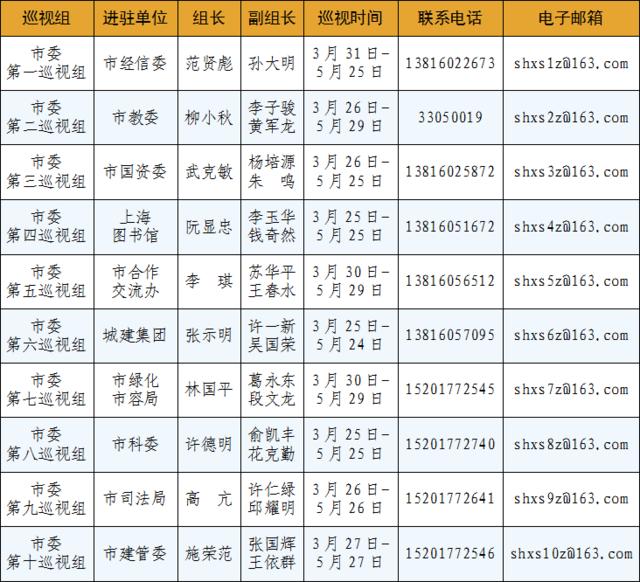 近日,上海今年首轮巡视已全面开始,市委第一至第十巡视组分别进驻市经信委、市教委、市国资委、上海图书馆、市合作交流办、上海城建集团、市绿化市容局、市科委、市司法局、市建管委10家单位开展巡视。