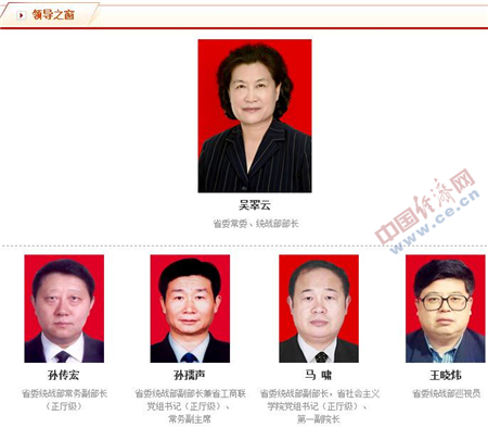 山东省委统战部官方网站“部领导介绍”栏目截图