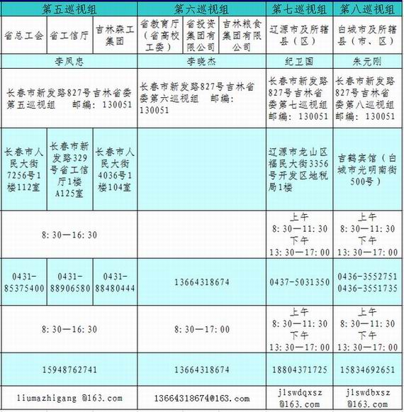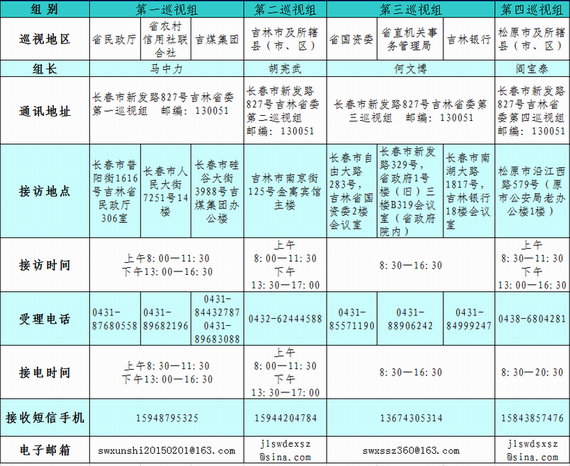 2015年吉林省委第二轮巡视各巡视组联系方式