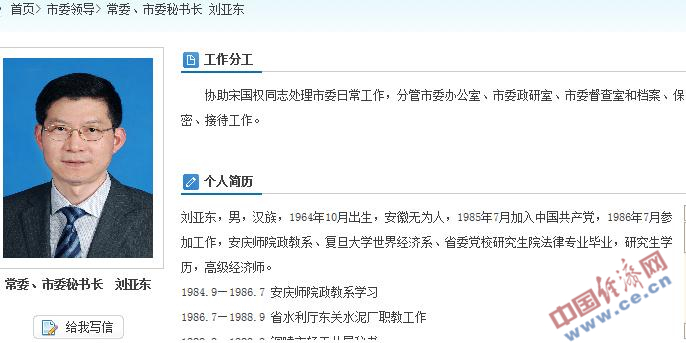 中国经济网铜陵11月24日综合报道(彭博) 安徽省铜陵市政府官方网站“市委领导”栏目近日进行更新,据最新名单显示:铜陵市委秘书长刘亚东已任市委常委。