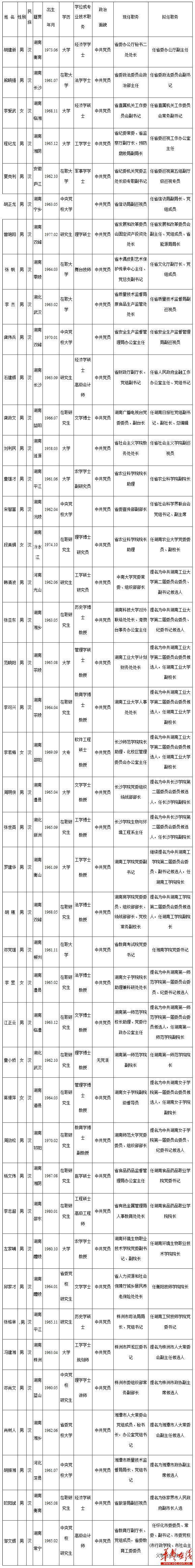 42名湖南省管干部任前公示