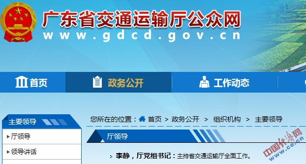 广东省交通厅官方网站截图