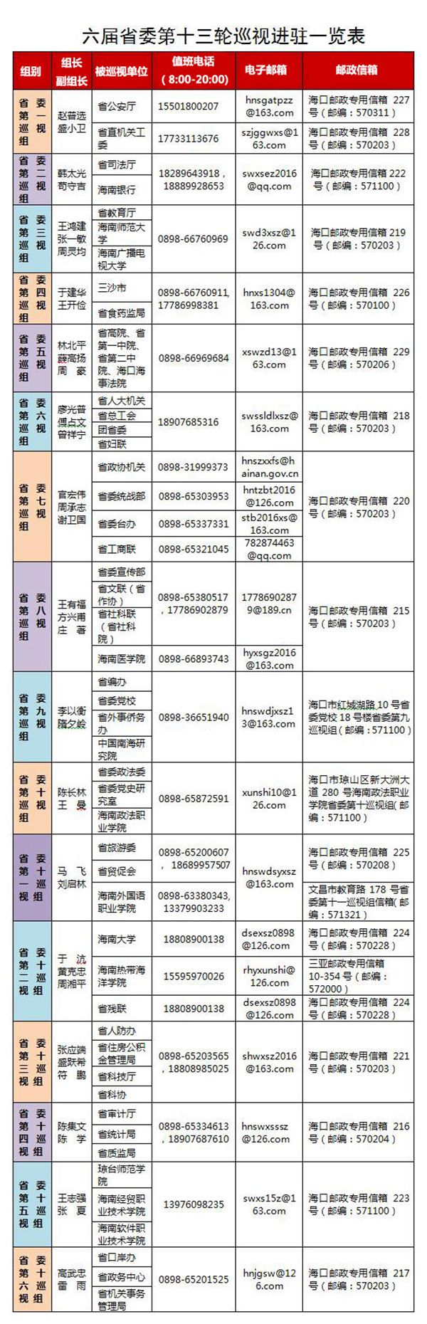 按照省委统一部署,8月3日至8日,海南省委第十三轮巡视16个巡视组陆续进驻三沙市和49个省直单位开展为期2个月的巡视工作。各巡视组进驻后分别召开工作动员会,向被巡视党组织领导班子成员传达习近平总书记关于巡视工作的重要讲话精神和省委“五人小组”会议精神,强化政治巡视要求,明确本轮巡视的工作安排、任务要求和方式方法。