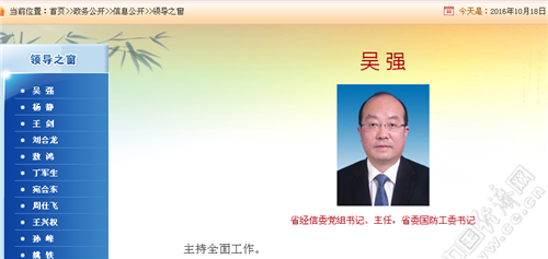 中国经济网贵阳10月18日综合报道 据贵州省经信委网站“领导之窗”栏目显示,吴强任贵州省经信委党组书记,马宁宇不再担任。