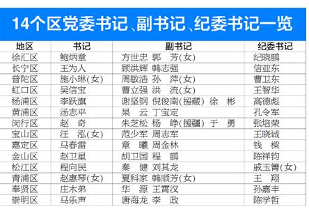 上海14个区党委换届选举完成 党政一把手平均年龄49.8岁