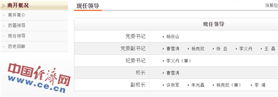 南开大学官方网站“现任领导”栏目截图