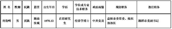 为了加强对干部选拔工作的监督,提高识别和任用干部的准确程度,现对湖南省委常委会会议研究决定的下列拟任职人选进行任前公示: