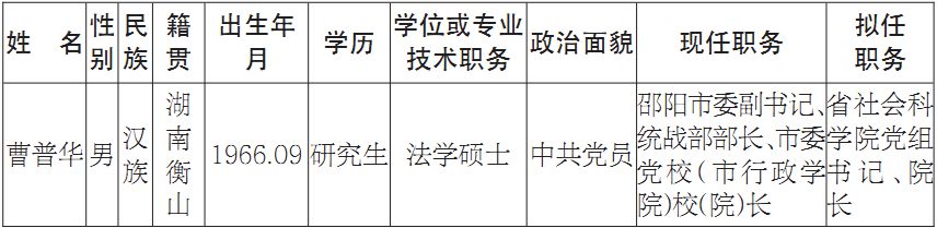 为了加强对干部选拔工作的监督,提高识别和任用干部的准确程度,现对省委常委会会议研究决定的下列拟任人选进行任前公示: