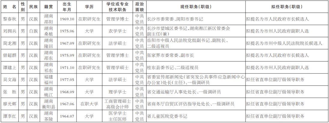 为了加强对干部选拔工作的监督,提高识别和任用干部的准确程度,现对省委常委会会议研究决定的下列拟任人选(候选人人选、提名人选)进行任前公示: