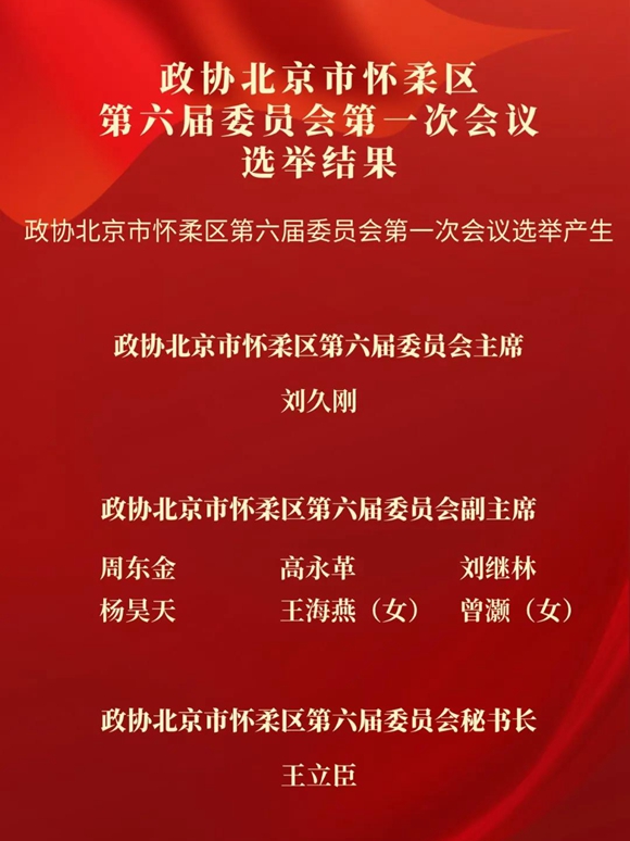 12月15日,政协北京市怀柔区第六届委员会第一次会议进行大会选举,选举产生了政协北京市怀柔区第六届委员会主席、副主席、秘书长和常务委员。