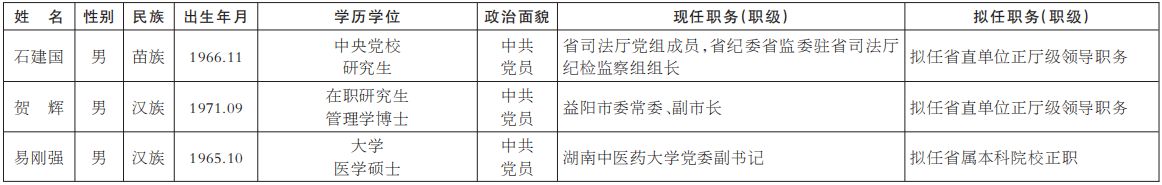 为了加强对干部选拔工作的监督,提高识别和任用干部的准确程度,现对省委常委会会议研究决定的下列拟任人选进行任前公示: