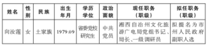 为了加强对干部选拔工作的监督,提高识别和任用干部的准确程度,现对省委常委会会议研究决定的下列拟任人选进行任前公示: