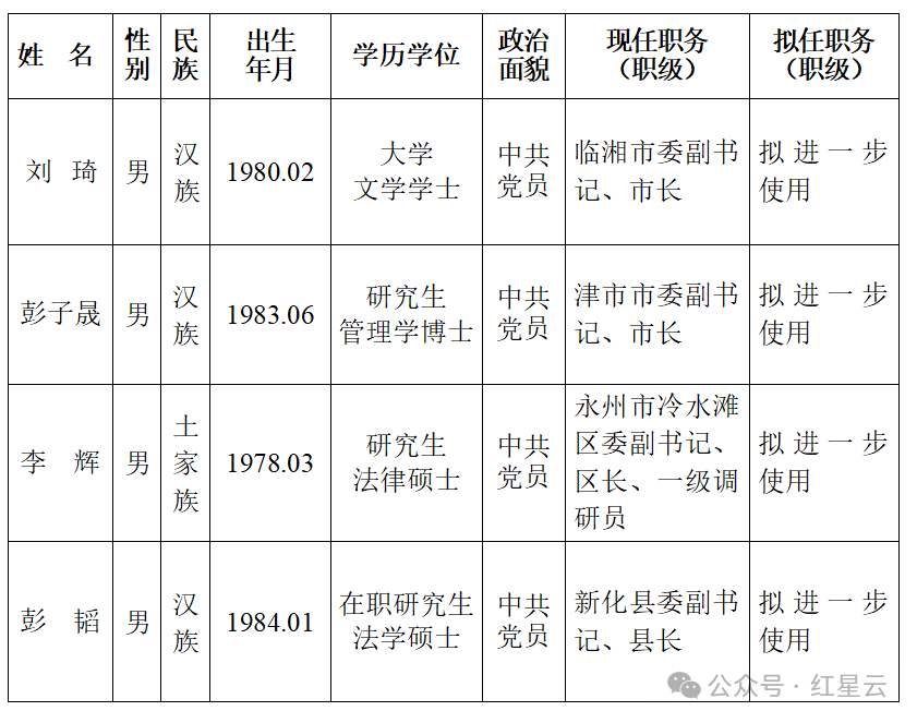 为了加强对干部选拔工作的监督,提高识别和任用干部的准确程度,现对省委常委会会议研究决定的下列拟任人选进行任前公示: